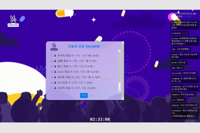 라이브 퀴즈쇼 웹개발 및 생중계 진행!