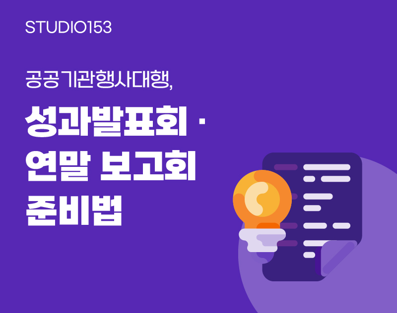 11월은 공공기관 실무자에게 가장 복잡한 달입니다. 성과 자료는 쌓이고, 보고회 일정은 다가오고, 발표자는 계속 바뀌고, 협업 부서는 마지막까지 수정을 요청합니다. 보고회는 단순한 ‘발표 행사’가 아니라 1년간의 일정을 한 자리에 압축하는 프로젝트에 가깝습니다. 그래서 대부분의 실무자는 이 시기에 “흐름이 안 잡힌다. 어디부터 손을 대야 하지?” 라는 고민을 반복합니다. 저희 STUDIO153은 그동안 공공·교육·금융 등 다양한 […]